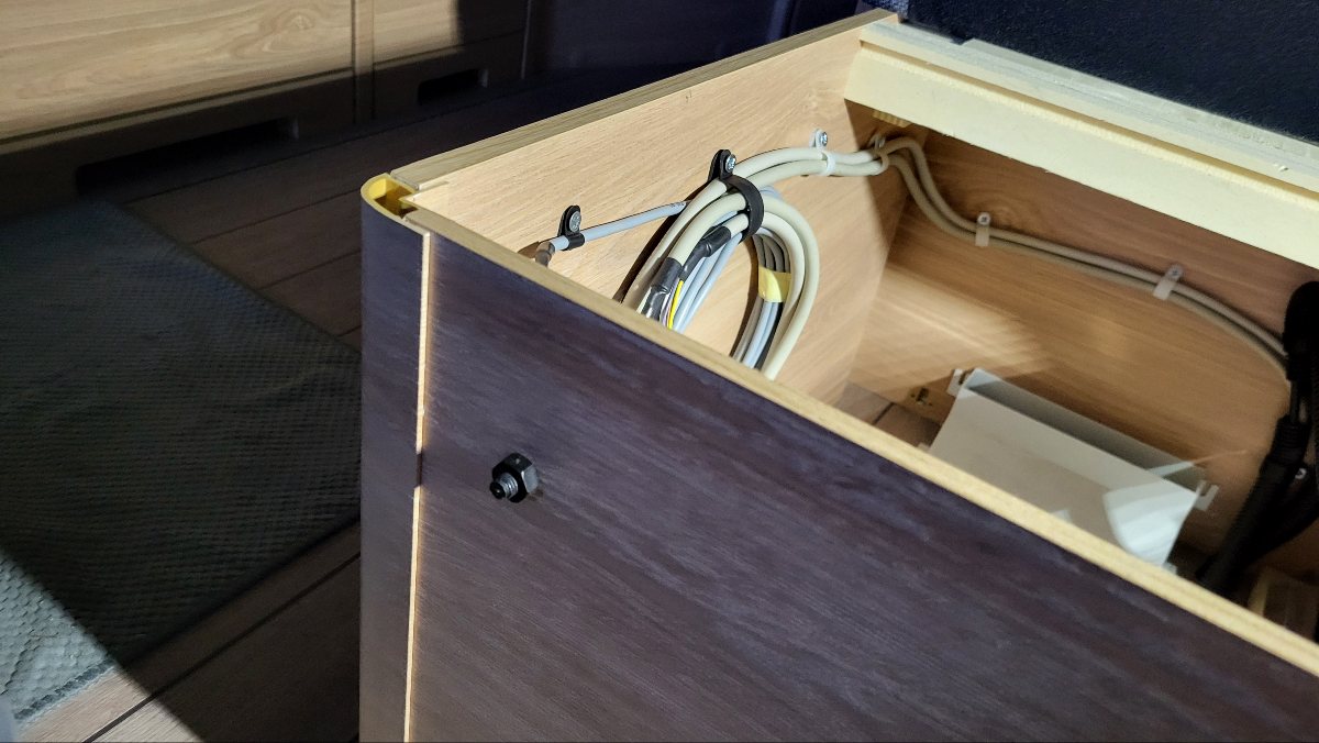 möglichst hoch aufgebockt habe. So konnte ich die Montagearbeiten unter dem WW mit einem Rollbrett gut durchführen. Völlig ungeeignet für die Verlegung der Kabel ist aber