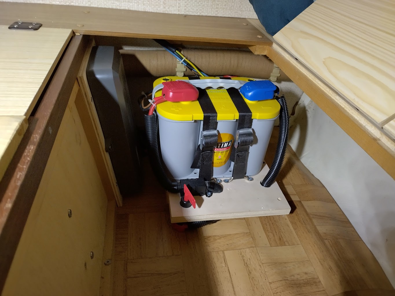 Als de caravan nog niet is uitgerust met een accu moet deze geplaatst worden om de mover van energie te voorzien. Normaal gesproken wordt de accu alleen gebruikt voor de mover. Wij kunnen de accu aansluiten op het boordnet van uw caravan. U kunt de accu dan gebruiken voor 12 Volt toepassingen, zoals de verlichting, kraantjes en het toilet. De aansluiting wordt zo gemaakt dat automatisch de beste energiebron gekozen wordt. Indien er geen 230V aansluiting is en geen auto aangekoppeld is, komt de energie van de mover accu.